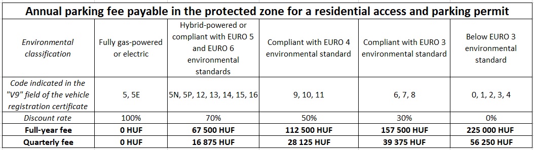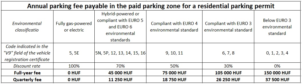 Note: Residential parking and access permits are not valid on streets owned by the capital (Szent István Boulevard, Nyugati Square, Bajcsy-Zsilinszky Road, Károly Boulevard, Múzeum Boulevard, Kálvin Square, Vámház Boulevard, Fővám Square), where parking is only allowed for a fee.