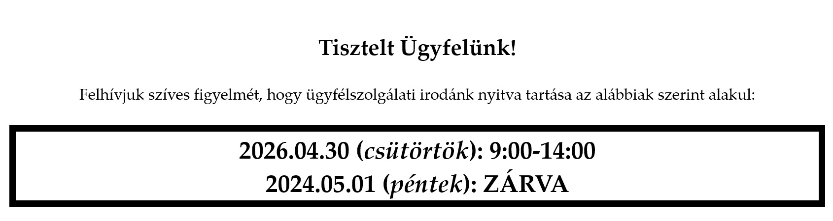 ⭐ Szerdán hosszabb ügyfélfogadás